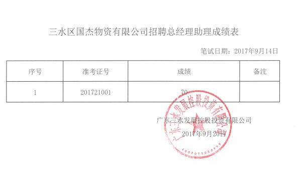 三水区国杰物资有限公司招聘总经理助理成绩公示