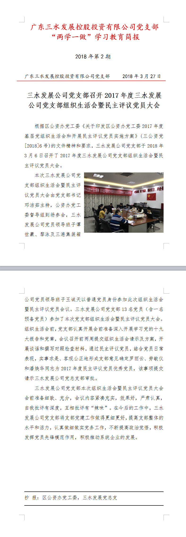 三水发展公司党支部“两学一做”学习教育简报第2期——召开2017年度三水发展公司党支部组织生活会暨民主评议党员大会