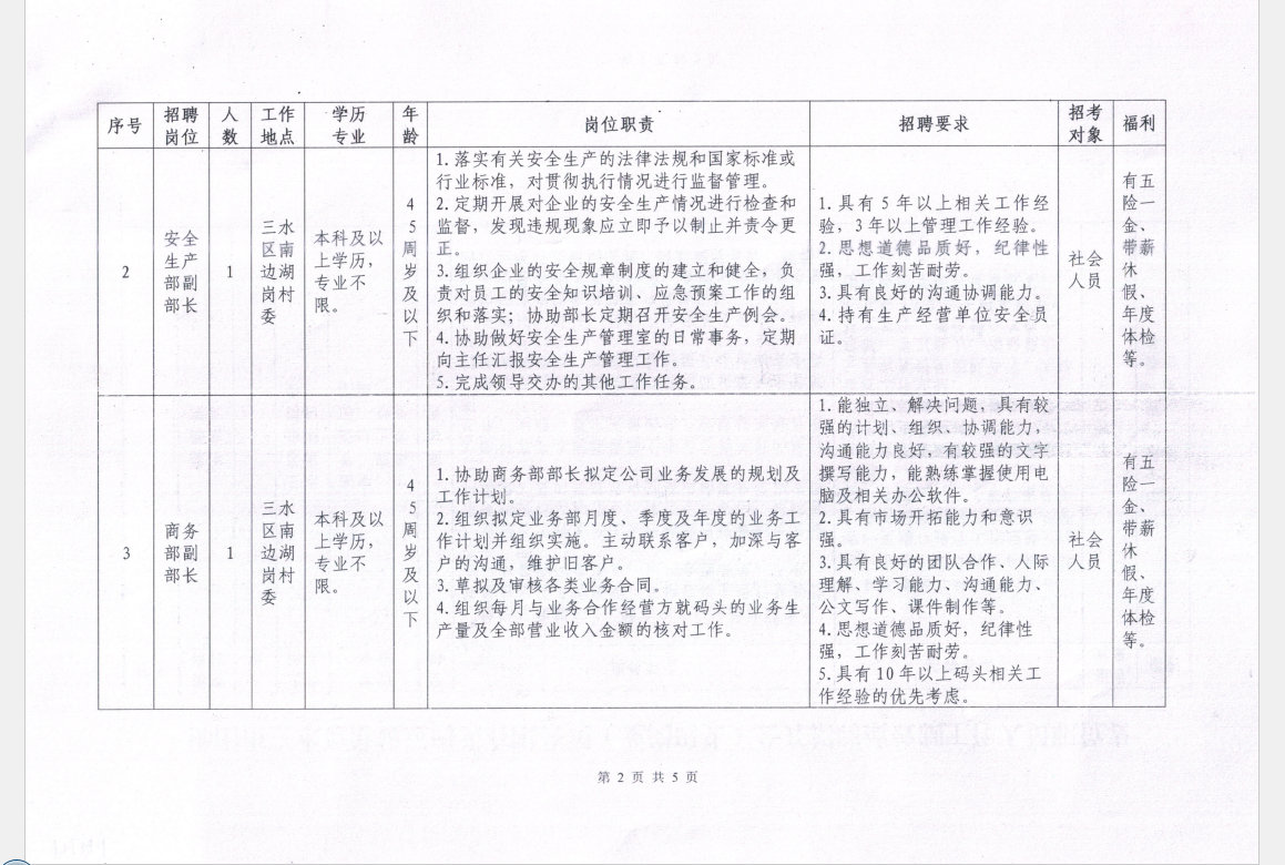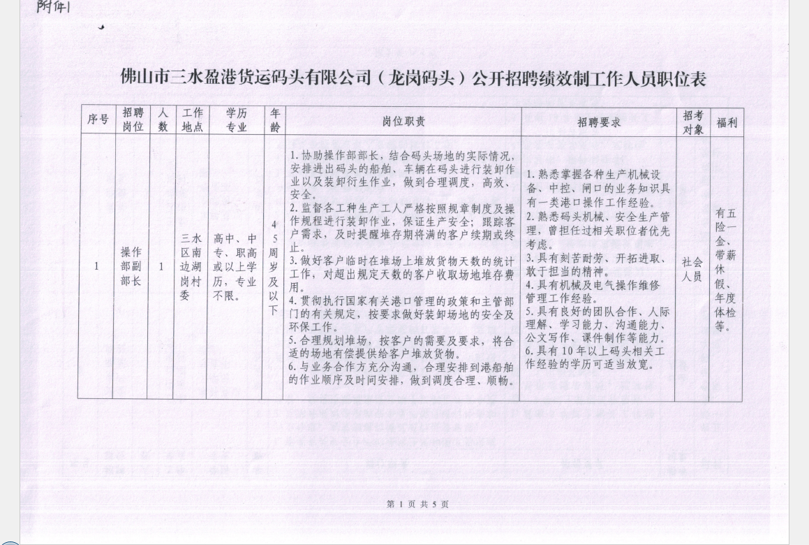 佛山市三水盈港货运码头有限公司(龙岗码头)公开招聘绩效制工作人员公告