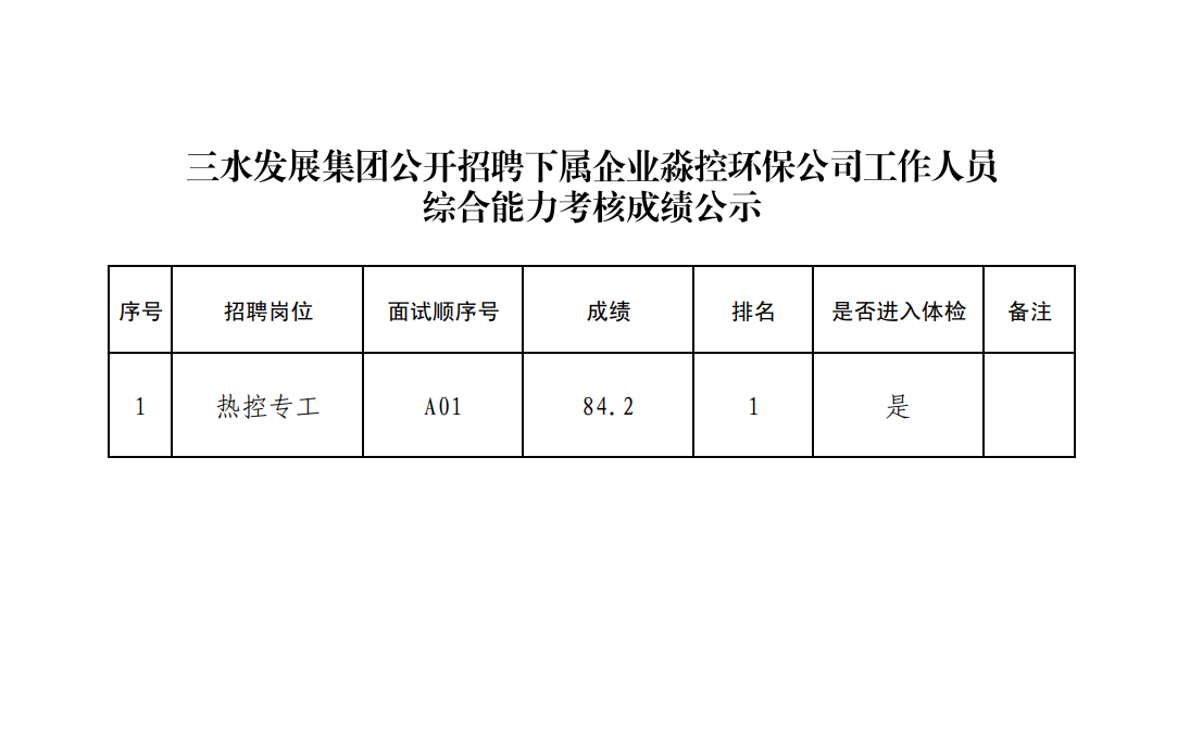 三水发展集团公开招聘下属企业淼控环保公司工作人员综合能力考核成绩公示