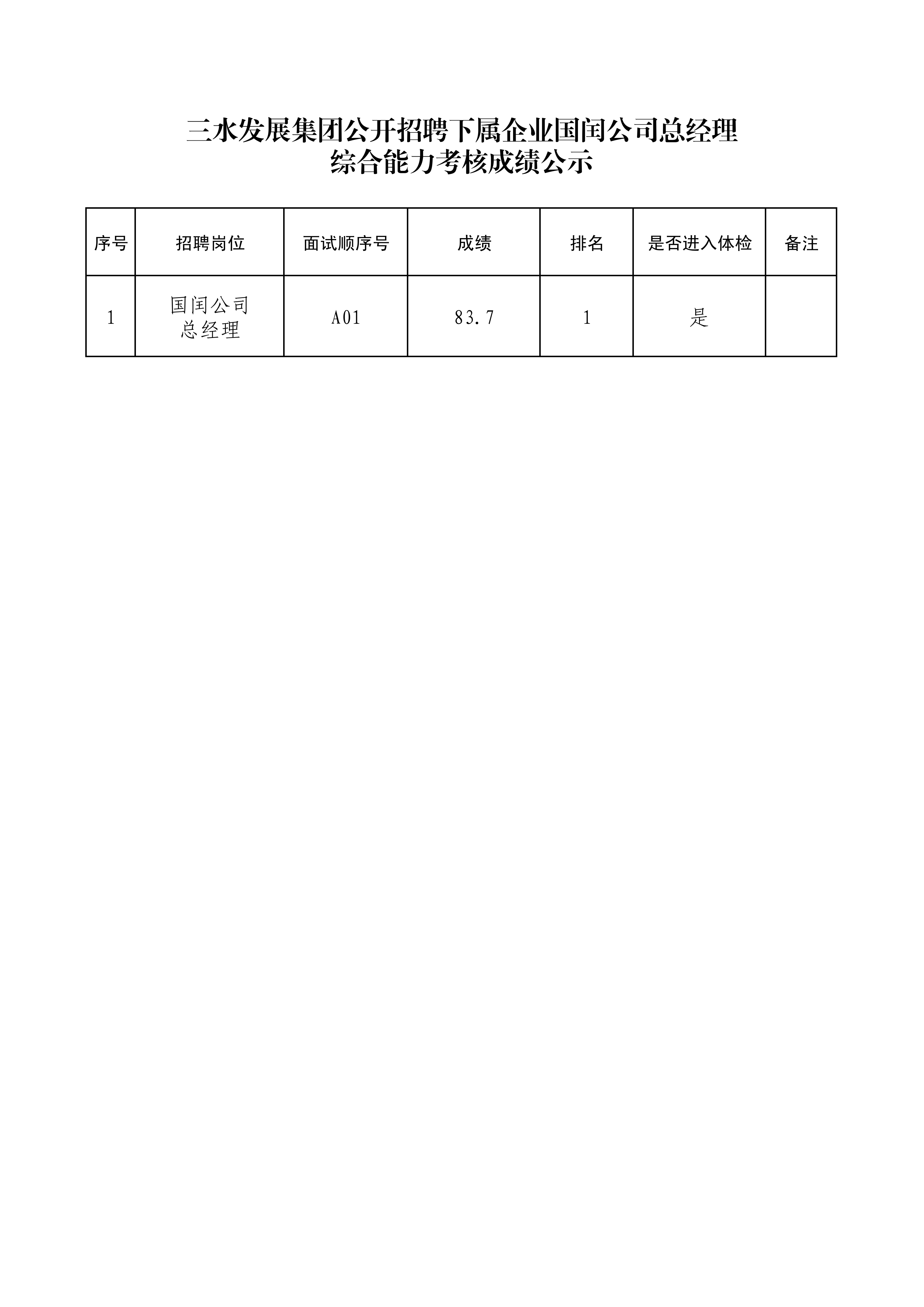 三水发展集团公开招聘下属企业国闰公司总经理综合能力考核成绩公示