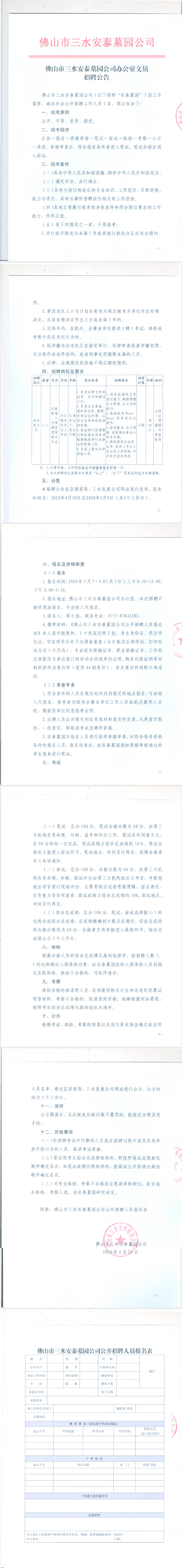 佛山市三水安泰墓园公司办公室文员公开招聘公告