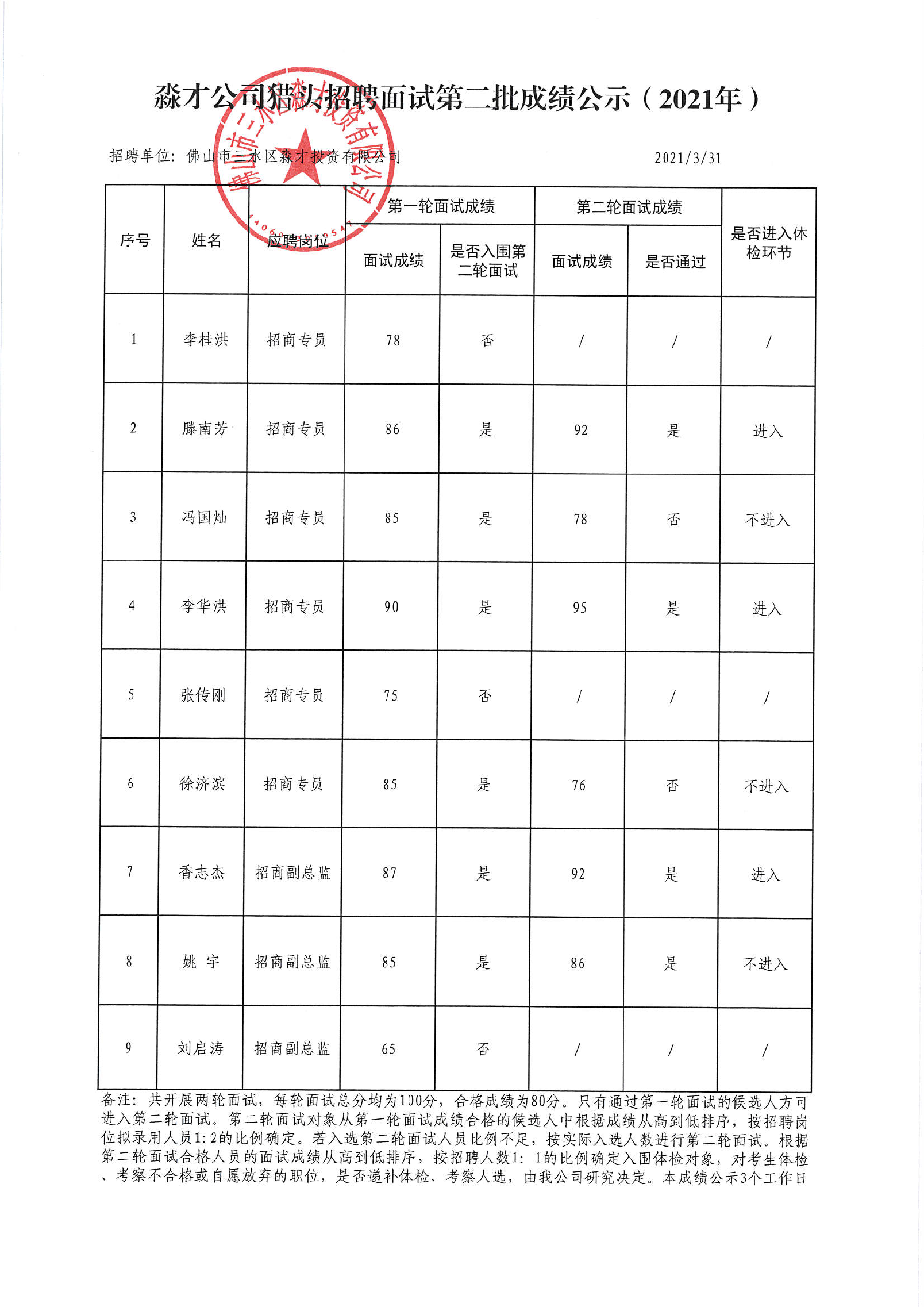 淼才公司猎头招聘面试第二批成绩公示(2021年)