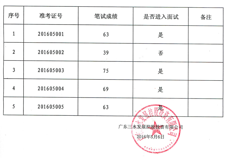 广东三水发展控股投资有限公司招聘财务人员笔试成绩公示